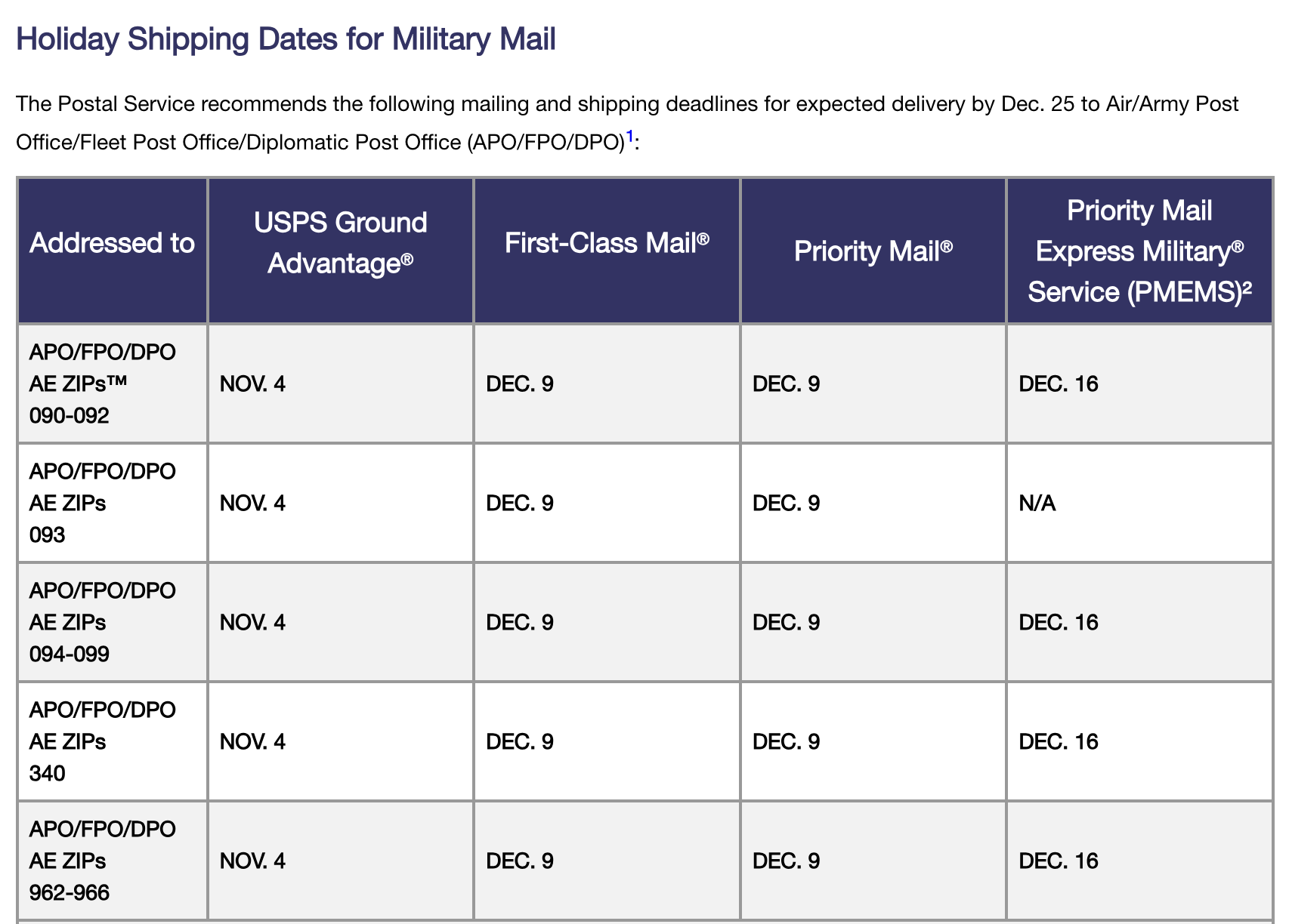 *PMEMS: Priority Mail Express Military Service is available to select military / diplomatic Post Offices. PMEMS is not available for APO/FPO/DPO AE ZIPs 093. Check with your local Post Office to determine if this service is available to an APO/FPO/DPO address.
